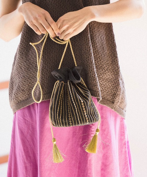キャンバス地に繊細なビーズ刺繍が施された、存在感のある巾着バッグ。 一点投入でコーディネートのアクセントに。 ------------------------------------- ≪お買い物をよりお楽しみいただくために≫ ◆商品のお気に入り登録(ハートマークをクリック) 完売カラーの再入荷通知や、完売間近の通知、セールの通知も受けることができます。 ◆ブランドのお気に入り登録 新商品や再入荷など、いち早くブランドのお得な情報を受け取ることができます。 -------------------------------------