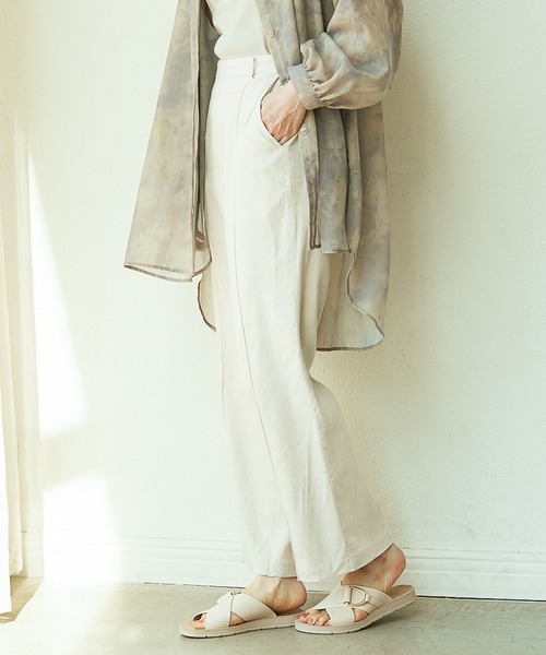 レプシィムの夏の定番!麻混のストレッチパンツ<21SS>人気の麻混のパンツにストレートパンツが登場!《サイズ感》例年よりも少し小さめに調整しているので、ウエストのフィット感がUPしてすっきりとしたシルエットに。※SSサイズはWEB限定サイズです《シルエット》美脚効果の高めるために腰回りをすっきりさせて、ピンタックを入れることで脚のラインがきれいに見えるようにこだわりました。《素材》軽くて、肌当たりの良いの麻レーヨン素材を今季も採用。ストレッチ性があるので動きやすさも◎。麻が多めに入っていますが、程よい光沢感と落ち感があり、ナチュラルな印象になりすぎず、キレイめな印象でも穿きやすい素材です。麻混素材はシワが特有の風合いもお楽しみいただけるので、着るたびに違った表情みせてくれるパンツです。《デザイン》ウエストは後ろゴム仕様、ベルトループは継承しているのでサイズ調整可能です。※XSサイズはWEB限定サイズです。
