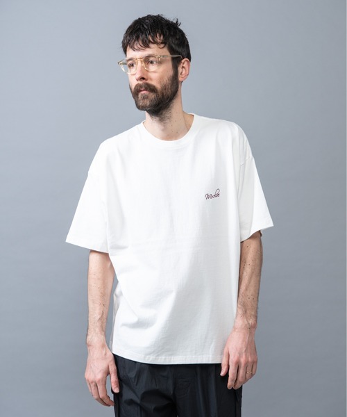 筆記体ロゴを胸元にシンプルに刺繍したTシャツ。米綿の空紡糸でヘビーウェイトに編み立てたオリジナルボディーは身幅の広いBOXシルエット。抜群なシルエットのため着用すると大きいというよりリラックス感ある洗練されたシルエットな印象。【MR.OLIVE】デザイナー兼ディレクター:長尾亘が2003年よりスタート。アメリカがヨーロッパに強く憧れた1960年代から70年代のカルチャーを基本ルーツとし、ロック・オーセンティック・ドレスという切り口で再構成し、ワードローブとして機能するリアルクロージングを提案。MR.OLIVEのブランド名は男性の総称「ミスター」と女性的な名詞「オリーブ」を組み合わせることで、(相反する要素をミックスする)ことからきている。代官山に構えるコンセプトショップ【WALK IN CLOSET】は実質的な直営店であり、メインでコレクションを取り扱っている。