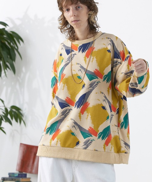 アートなプルオーバーを大胆に着こなそう。レトロながらも今っぽい雰囲気をミックス 《ファブリック》上質なコットンを使用したスウェット素材を採用。裏地パイルが織りなすエアリーな風合いが特徴的で肌なじみの良い軽快な着心地を実現。風合いだけでなく耐久性や吸湿性も併せ持ち、ケアも容易で長く愛せる自分だけの一着に。コットンの心地よい生地感をお楽しみいただけます。 《ディテール》インパクトのあるデザインながらも、絶妙な色合いが大人の雰囲気を漂わせてくれる一着。大胆なパターンをあしらったソフトなプルオーバー。トレンドのオーバーサイズを踏襲したドロップショルダーに加え、大きく取った身幅からウェストを絞らずにストンと落としたボックスシルエットが魅力。リラクシーな着心地にこだわりつつも、キレイめなジャケットスタイルなど、多様な着こなしにマッチする仕上がりに。 《スタイリング》長すぎない丈のボックスシルエットは、ボトムスを選ばないので様々なスタイリングに対応可能。鮮やかなレトロ柄のデザインは、羽織りの中に合わせても十分な存在感を与えてくれます。トレンドライクなタックインスタイルで、レトロデザインを主役にした着こなしもおすすめです。ENDER PRODUCTS / エンダープロダクツ「好感度を上げるファッション」をテーマに一着ごとに着心地、雰囲気、シルエットなど拘りを持って服作りに取り組み、新しい価値のあるものを提案していくブランドです。今の大人が着やすいトレンドを妥協無く追及していきます。