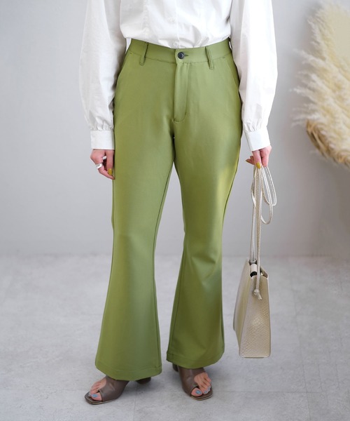 スラリとしたきれいなシルエットが自慢。さらっとしたはき心地、ウエストバックゴムで楽チンなのに美脚見えするセミフレアパンツ。ハイウエストなのでタックインするとスタイル良く見せてくれます。トップス次第でキレイめにもカジュアルにもコーデできる頼れるアイテムです。■コーディネートアイテムトップス…tb77c04869バッグ…gz76q04772ベスト…tv77c04867トップス…tb77c04525■商品仕様ポリエステル生地裏地…あり伸縮性…若干あり透け…なしポケット…あり付属品…なし着脱…前開きボタン・ファスナー・ウエストバックゴム※ボタン・ファスナーの仕様は変更される場合がございます。※着用の際、摩擦や発汗により衣類やバッグ等に色移りの恐れ(特に淡色系のもの)がありますので、十分ご注意下さい。※サイト上のカラー名と、お届け商品に記載されているカラー名が異なる場合がございます。【ご購入前に必ずご一読下さい】※モニタ環境によって、商品の色合いが多少異なる場合がございます。※色落ちの恐れがありますので、他のものと分けてお洗濯して下さい。※商品をお安く提供させて頂く為、検品後のアイロン掛けは省略させて頂いています。発送時も簡易梱包の為、お受け取り時にたたみ皺があると思いますがご了承下さい。
