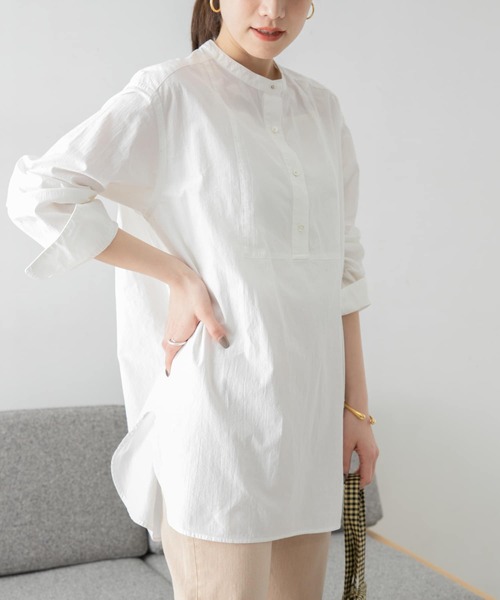 【シンプルながらも拘りのつまったコットンボイルシャツ】ドライでリラックス感のあるコード入りのコットンボイルを使用した、肌離れがよく涼やかな着心地のシャツ。衿のギボシ釦とビンテージライクな切替のデザインがポイント。ワンウォッシュをかけることでより風合いよく仕上げています。POINT・春夏シーズンにぴったりな肌離れがよく涼やかな素材感・どなたでも着やすいベーシックなカラー・ご自宅で手洗いが可能COORDINATEデニムやカラーパンツ等、ボトムスを選ばず、何とでもコーディネートして頂けます。キャミワンピースと合わせたスタイリングもオススメです。※商品画像は、光の当たり具合やパソコンなどの閲覧環境により、実際の色味と異なって見える場合がございます。予めご了承ください。※商品の色味の目安は、商品単体の画像をご参照ください。-----------------------------透け感:あり伸縮性:なし裏地:なし光沢:なしポケット:なし-----------------------------