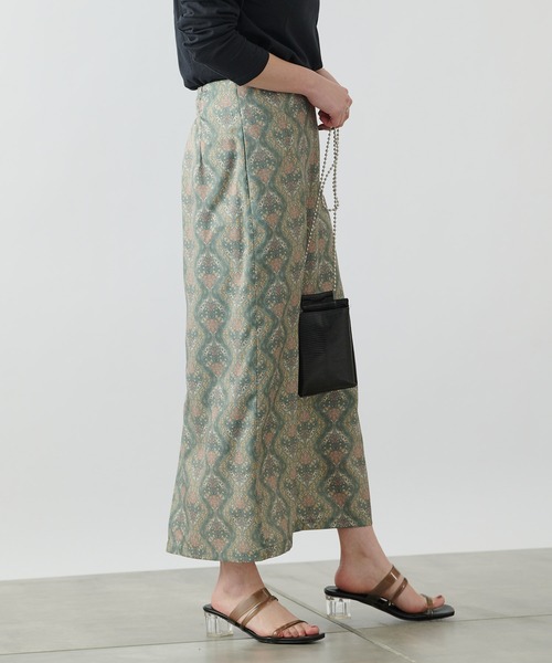 【大人上品なダマスク柄プリントのスカート】1着で今年らしいトレンド感を演出してくれるダマスク柄スカート。ハイウエストデザインと縦ラインを強調する柄で脚長効果も抜群。ウエストは後ろゴム仕様になっているため、ゆったり楽ちんながらも前はすっきりとしたシルエットを演出。華やかさもありつつ大人上品な重ね着を演出してくれます。なじみの良いカラー展開なので個性を出しつつも着回しやすいアイテムです。・トレンドのダマスク柄/総柄プリントのスカート・光沢感のある、さらりとした肌触りが着心地のよい生地感・きれい見えしながらもリラックス感のある履き心地が魅力【コーディネート】トップスはカジュアルにルーズTシャツやプリントTシャツに合わせるのはもちろん、ブラウスやシャツ合わせで綺麗めカジュアルも。メッシュのプルオーバーやシャツなどカジュアルなものと合わせて、雰囲気のあるスタイリングがお勧めです。チュニック丈のタックシャツやブラウスと合わせると今年っぽい印象に。今期トレンドのシャツワンピースやニットベスト合わせでレイヤードスタイルもお勧めです。いつもの定番コーディネートをレトロでクラシカルな印象に仕上げてくれます。同素材のパンツもおススメです。品番:CWA1011302A0002ダマスク柄タックパンツ着用スタッフ 157cm■素材・洗濯について表地: ポリエステル100% 裏地: ポリエステル100%別布部分: ポリエステル100%洗濯:洗濯機使用可※着用、お取り扱いの際は、商品についている品質表示とアテンションタグを必ずご確認下さい。※商品タグに記載されている商品名がWEBでの表記名と異なる場合があります。※画像の商品はサンプルです。実際の商品と仕様、加工、サイズが若干異なる場合がございます。 ※照明の関係により、実際よりもやや明るく見える場合がございます。またパソコンなどの環境により、若干製品と画像のカラーが異なる場合もございます。予めご了承くださいませ。 【お気に入り登録】してお得な情報をCHECK!!・「商品のお気に入り登録」で再入荷通知や、ラストの通知、セール通知も受け取ることができます。・「ブランドのお気に入り登録」で新商品や再入荷など、お得な情報を受け取ることができます。__________________________________________________________