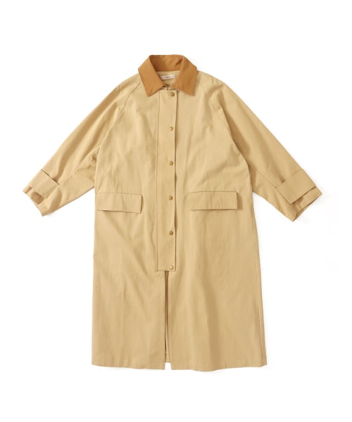 トレンド感あるマキシ丈と衿の配色カラー、背面のタックとベルトのディティールがポイントのステンカラーコートです。【STYLING】カジュアルに白いTシャツとデニム、スニーカー合わせがオススメです。シンプルなワンピーススタイルや、サロペットの上から1枚羽織るだけでもセンス良く決まります!!【DETAIL】バックスタイルにタックが入り、裾にかけて緩く広がったシルエットが綺麗に表現されています。後ろのベルトディティールと、大き目のフラップがメンズライクな雰囲気に。オーバーサイズでもセンス良く着こなせます。衿の配色がこだわりです。<サイズ>身幅:60.5cm袖丈:71.5cm着丈:116cm<素材>綿:100%<モデルの身長>155cm※ストレッチなし※裏地なし※ポケットあり※商品のお取扱いに関しましては、商品に付属のアテンションカード、洗濯ネームをご覧ください。※モデル着用画像は光の当たり具合で色味が違って見える場合がございます。実物の商品の色味はディティール画像をご参照ください。