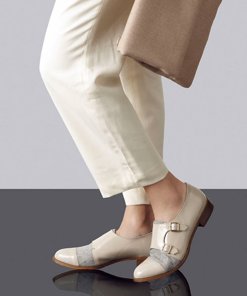 ◆◇◆♪New Arrival Fall&Winter 2014♪◆◇◆今シーズン押さえたいマニッシュシューズ。底周りのつくり方など、メンズライクディテールにこだわったダブルモンクシューズはモダンシックに仕上がっています。オーセンティックな革の質を生かしたアイテムはあえてカジュアルなアウターなどを合わせることで旬なミックス感を楽しめます。トレンドのアイスグレーにはウール素材を使用し同系色の異素材コンビにも注目です。お問い合わせの際は、全国のOdette e Odile店舗まで下記の品番をお申し付けください。品番:45172980592