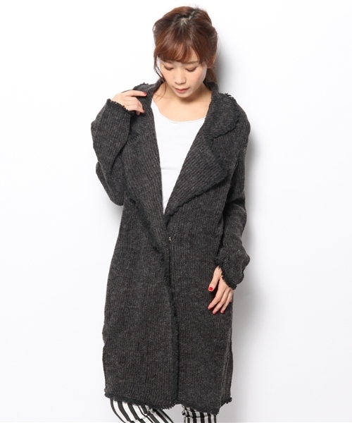 mystic(ミスティック) フリンジ使いがポイントのニットソーガウン。ミドル丈なので、縦長のラインを強調してくれすっきりと着こなせます。 カーディガン感覚で今の時期から羽織って頂けます!