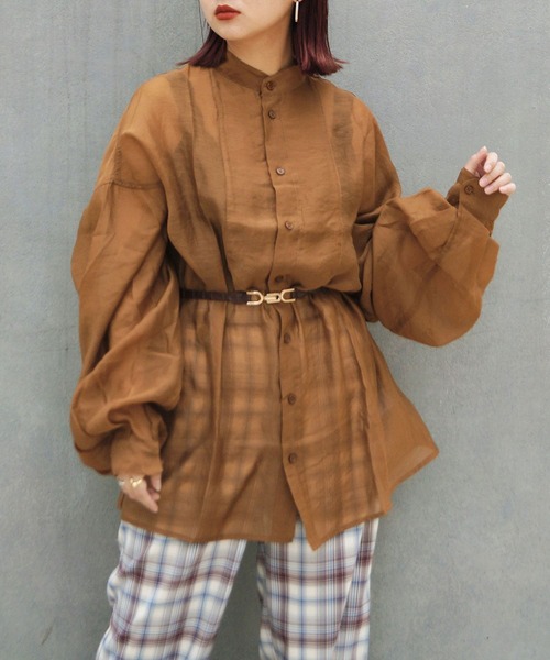 ほどよい透け感が使いやすいBIGシャツが登場!袖のボリューム感がポイントになり、ふんわりとしたシルエットが存在感抜群のアイテムです。お尻がすっぽりと隠れる丈感なのでゆるっと着られるのが嬉しい!ベルトでウエストマークしてあげたり、羽織りとしても使いやすいサイズ感です◎※屋外での撮影画像は、光の当たり具合で色味が違って見える場合があります。商品の色味は、スタジオ撮影の画像をご参照ください。