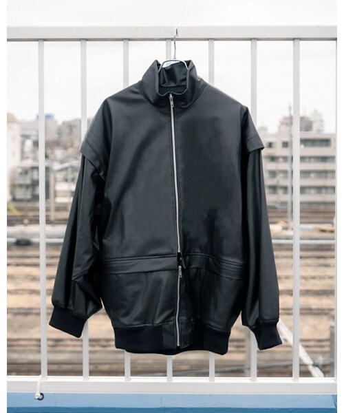 オーバーサイズのフェイクレザーブルゾン。 バルーンシルエットのアームと、過剰なファスナーが特徴的。 ショルダー、ウエスト部分に着脱可能なファスナーを取り付けており、ショート丈やベストなど、1着あればスタイリングの幅が大きく広がります。 シーズンテーマである『過剰と不足』を象徴するアイテムの一つ。 限りなく本革に近いフェイクレザーを使用しており、上品な艶感としなやかさがあり、無骨さと品の良さを兼ね備えた1着です。 【カラー】 BLACK 【サイズ】 2, 3 【品番】 SK-JK-03 【素材】 表地 : 合成皮革 裏地 : キュプラ100% 【寸法】 サイズ2 着丈 : 73cm 身幅 : 62cm 肩幅 : 59cm 袖丈 : 57cm サイズ3 着丈 : 75cm 身幅 : 64cm 肩幅 : 60cm 袖丈 : 58cm