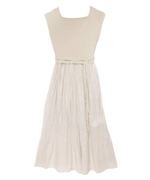 ■デザインポイント ワッシャー加工のスカートとニットドッキングのワンピース。 スクエアネックが首元のデコルテをキレイに見せます。 ウエストには細いストリングがアクセントになり、全体のシルエットを美しく引き締めてくれます。スカートのスリットと透け感が軽やかで夏らしく涼し気な印象。■スタイリングポイント ・素材感とこだわりのデザインで1枚で主役級のワンピースなのでシューズはシンプルなアイテムをセレクト・丈が長い場合はウエスト部分でブラウジングすると〇--------------------------------------------------- 透け感:あり 裏地:スカート部分のみあり 生地の厚さ:薄手 洗濯:×伸縮性:あり ポケット:あり ジップ:あり ---------------------------------------------------【スタッフ着用コメント】《スタッフA》身長:163cm/普段サイズ:S/着用サイズ:Fサイズ感:157cm/S着用でくるぶしが見えるくらいなのでペタンコでもヒールでもバランスをとりやすい丈になってます。素材感:スカート部分は軽い生地です。おすすめPOINT:ワッシャー加工を施してるので座りジワも気にせず着れるのが嬉しいポイント!【 ZOZOTOWNでお買い物を楽しむ便利機能 】♡商品のお気に入り登録完売カラーの再入荷時、ラスト1点の時、セール開始時にお知らせします。予約アイテムが入荷して通常販売になった時もお知らせしてくれます!その他お得な通知も盛りだくさんです。♡ブランドのお気に入り登録新商品や再入荷、セール情報など、いち早くブランドのお得な情報を受け取ることができます。ぜひご活用ください!