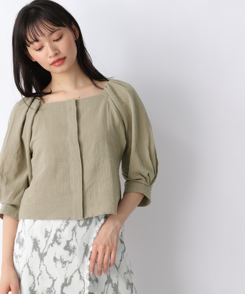衿元のカッティングが印象的なプルオーバーです♪ デコルテが美しく見えるネックライン、季節をつなぐ5分袖など、キレイなシルエットが引き立つ1着になっています☆見頃のコンパクトなサイズ感に対し、ボリュームのあるお袖がバランス良くポイントに。 特徴的な凹凸感のある生地が、コンパクトサイズのブラウスでも主張をしてくれています。 フレアパンツやワイドパンツ、デニムとの合わせがオススメです。-INFORMATION-◆商品のお気に入り登録完売していても再入荷時に再入荷通知を受け取ることができますので、是非ご登録ください♪◆ブランドのお気に入り登録新商品や再入荷などの情報を受け取ることができますので、是非ご登録ください♪