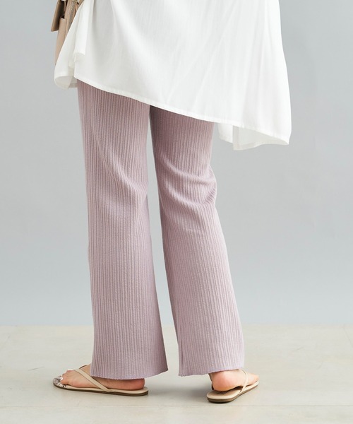 \ヘビロテ間違いなしのランダムリブパンツ!/ランダムリブの表情ある素材感が、着こなしにこなれた印象をプラスしてくれるパンツ。ややフレアシルエットで、カジュアルすぎない上品さを演出。ブラウスやカットソーとのコーディネートはもちろんワンピースのレイヤードとしてもマッチし、季節を問わずロングシーズ履いて頂けるので重宝すること間違いなし!肌触りが良く、軽い着心地もこのパンツの魅力。また、ウエストは総ゴム仕様でストレスフリーな履き心地。ワンマイルウェアとしても、シティーユースでも使えるリラクシーパンツです♪*********************・ランダムリブの表情ある素材感・ややフレアシルエットで上品さをプラス・ウエスト総ゴム仕様でリラクシーな履き心地!*********************【 ♥ をクリックでお得な情報をお知らせいたします 】〈 商品のお気に入り登録 〉 お気に入りアイテムのお値下げ・再入荷・在庫ラスト1点など通知を受けることができます。〈 ブランドのお気に入り登録 〉DOUDOUの新商品や再入荷、セール、クーポン配布などお得な情報を受けることができます。--------------------------------------※ 掲載画像の商品の色味は、 撮影場所や光の当たり具合などにより色味が異なって見える場合がございます。 また、お客様のお使いのPC・スマートフォン等のモニター環境などにより色味が異なって見える場合がございます。予めご了承の上ご注文ください。 ※着用、お取り扱いの際は、商品についている品質表示とアテンションタグを必ずご確認下さい。
