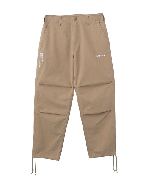 【デザイン】ロングシーズン大活躍するミリタリーパンツが登場。ゆったりしたルーズシルエットで履きやすく、アクティブさを演出!膝にタックが入ることで、存在感のあるロングパンツに仕上がっています。サイドとバックのポケット付き、裾のシルエットが変えられる紐がついていて実用性も抜群な優秀アイテムです。カジュアルなスタイリングで使いやすいチャコール、ベージュ、オリーブの3色展開!【スタイリング提案】落ち着いた色味のパンツなので、Tシャツと合わせるだけでストリートコーデが完成。単品使いはもちろん同シリーズのシャツ(110212014001)に合わせるのもオススメです♪【スタッフ着用コメント】SILAS原宿 STAFF 身長:172cm***********年齢:20代前半/身長:172cm/着用サイズ:Lサイズ感:標準サイズより気持ち大きめだと思います。丈も少し長めです。着心地:生地が薄めなのできやすく履きやすいです!オススメコーデ:シンプルなTシャツから色物・柄物までどんなアイテムにも合わせやすいのでおすすめの1着です。**************************・透け感:なし・裏地:なし・光沢:なし・生地の厚さ:普通・伸縮性:なし【取り扱い注意事項】プリント部分は永久的なものではなく、長期間の使用・摩擦により、徐々に剥がれや欠損が生じます。素材の特性上、他の衣類との摩擦や汗・雨に濡れた場合、色にじみ・移染の恐れが有ります。濡れた場合は素早く拭き取り乾かして下さい。着用時は同系色のものをご着用下さい。※画像の商品は光の照射や角度により、実物と色味が異なる場合がございます。また表示のサイズ感と実物は若干異なる場合もございますので、予めご了承ください。※画像の商品はサンプルとなります。実際の商品と色味、仕様、加工、サイズ、素材等が若干異なる場合がございます。▼商品のお気に入り登録完売カラーの再入荷通知や、ラスト1点、セールの通知をお知らせします。予約アイテムが販売開始の際も通知を受け取ることができます。▼お気に入りショップに追加新商品や再入荷など、いち早くブランドの情報を受け取ることができます。