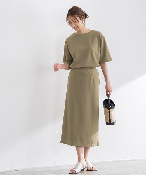 楽なのにきれい見え“ポンチスカートセットアップ” カジュアル過ぎないきれいめの表情 【素材】 程よくハリのある柔らかなポンチ素材が着心地抜群。少し光沢のある生地感が、カジュアルになりすぎずきれいめな印象に。シワになりにくくお手入れしやすいのも嬉しいポイントです。 【デザイン】 肩を落とした抜け感のあるトップスと、すっきりとしたストレートスカートのセットアイテム。シンプルなデザインなので単品使いとしても活躍します。 ※商品画像は着用イメージです。光や角度により、実物と色味が異なる場合がございます。 また表示のサイズ感も実物とは若干異なる場合もございますので、予めご了承ください。 【ブランド】 marvelous by Pierrot(マーベラスバイピエロ) 【お買い物を楽しむための方法】 **商品のお気に入り登録** 気になるアイテムが完売しても再入荷のお知らせ通知や、在庫ラスト1点の通知、セールの通知が届きます! **ブランドのお気に入り登録** 新商品や再入荷など、クーポン配布などのお得な情報を受け取ることができます。 洗濯:手洗い可