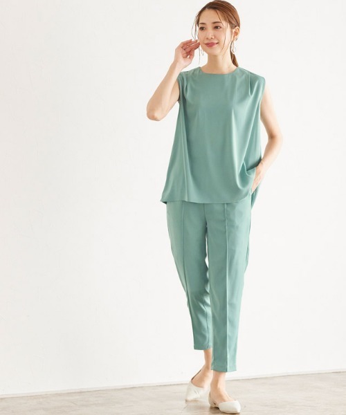 ON/OFF幅広く着回せる“ノースリーブセットアップ” “上品見えする素材” / “セットでも単品でも着回せる” 【素材】 滑らかで落ち感のある素材を使用しており、女性らしい風合いに。ややツヤ感のある表情の生地が上品な印象へ導いてくれます◎薄手なので透け感を軽減するため、パンツには裏地を付けています。 【デザイン】 トップスはジャケットやカーディガンを羽織りやすいノースリーブデザインに。肩からふんわり広がるAラインシルエットなのでで体型カバーにも期待できます◎パンツはピンタックを施したきれいめなラインに仕上げました。シンプルなデザインでオケージョンシーンからデイリーユースまで幅広く使えるアイテムです。 ※商品画像は着用イメージです。光や角度により、実物と色味が異なる場合がございます。 また表示のサイズ感も実物とは若干異なる場合もございますので、予めご了承ください。 【ブランド】 marvelous by Pierrot(マーベラスバイピエロ) 【お買い物を楽しむための方法】 **商品のお気に入り登録** 気になるアイテムが完売しても再入荷のお知らせ通知や、在庫ラスト1点の通知、セールの通知が届きます! **ブランドのお気に入り登録** 新商品や再入荷など、クーポン配布などのお得な情報を受け取ることができます。