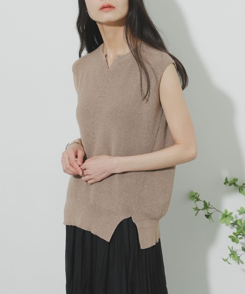 夏らしさのあるメランジ見えトップキーネックとセンターラインデザインが可愛いニットトップ◯ポイントとなるキーネック◯ヒプラインにかかるチュニック丈◯程よい粗野なマテリアルstylingパンツやスカート、幅広いアイテムと合わせやすいサイズ感にしております。※この商品は、ニット商品の為ピリングは出来ます。※洗濯の際には、他のものとの引っ掛かりに注意して下さい。※その他お取り扱いに関しましては、商品に付属のアテンションタグをご覧ください。※商品画像は、光の当たり具合やパソコンなどの閲覧環境により、実際の色味と異なって見える場合がございます。予めご了承ください。※商品の色味の目安は、商品単体の画像をご参照ください。▼お気に入り登録のおすすめ▼お気に入り登録商品は、マイページにて現在の価格情報や在庫状況の確認が可能です。お買い物リストの管理に是非ご利用下さい。-----------------------------透け感:ややあり伸縮性:あり裏地:なし光沢:なしポケット:なし-----------------------------