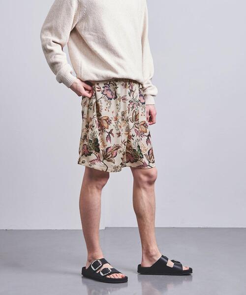 カラフルなボタニカル柄が印象的なショートパンツです。肌触りは柔らかく、さらっとした生地感と、ウエストがゴム仕様でドローストリングですのでリラックスした着心地です。春夏のデイリースタイルや、リゾートスタイルにもおすすめの一着です。シャツやTシャツなど、カジュアルアイテムとの相性が良いアイテムです。<VALET(バレット)>VALETとは、人の衣服の世話をする…従僕,世話係(主人の衣服・食事などを世話する男性の付き人)をいう。フォーカスするのはメンズワードローブ。“ 今の ”日本に合う上質でシンプルな日常着、穏やかでひかえめなテーラリング、計算されたデザインと絶妙な色合いが魅力。厳選された素材に良質な仕立て、洗練されたシルエットで、現代のワードローブに欠かせないエフォートレスなコレクションを提案します。店舗へお問い合わせの際は、全国のUNITED ARROWS各店舗まで下記の品名/品番をお申し付け下さい。品名:VALET Easy shorts print 品番:11195990981