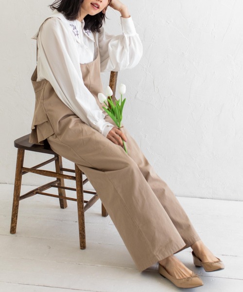 ガーリーかわいいこなれ風合いキャミサロペット<MATERIAL>コットン100%の風合い豊かなサロペットです。心地よくドライな生地感はヘビロテも安心なしっかり肉感。デイリーユースとして活躍間違いなしです♪<DESIGN>前に持ってきても、後ろでも可愛い大きめフリルが可愛いガーリーサロペット。ロールアップしてスニーカーを合わせると元気いっぱいのワークスタイルに。キレイめブラウスとマキシ丈、ヒール合わせにすると大人リゾートな雰囲気を楽しめます。ゆるっと着こなして楽チン可愛いサロペットはおうち時間にもぴったり。女の子気分高まるデザインはエイジレスにオススメしたい人気のアイテムです。フリルが程よく目線を散らして体型をカバーしてくれるので、お腹ぽっこりさんもお尻大きめさんも可愛くストンとしたシルエットを作ってくれます。デニムジャケットを合わせるとちょうどフリルがちょこんと出るのも可愛い♪技ありなセットアップコーデも楽しんでいただけます。<COLOR>ブラック:モードに着こなしたい綺麗めブラック。モノトーンでまとめたら高見え間違いなし!!サンドベージュ:元気いっぱいなのにちゃんと可愛い。ヘビロテ間違いなしの人気のベージュインディゴブルー:ボーダーT×赤パンプスでマリンテイストに合わせても可愛い。着回ししやすいインディゴブルーブルー:これからの季節お役立ちの爽やかブルー 何にでも合うのでデニムパンツ感覚で使って欲しいいい感じのブルーです。<CARE>※詳しくは製品に付属している洗濯表示をご参照ください。※撮影環境により、多少実際のカラーと異なる場合がございます。 また、携帯やスマートフォン、パソコンなどの画面上と実物では多少色が異なって見える場合がございます。