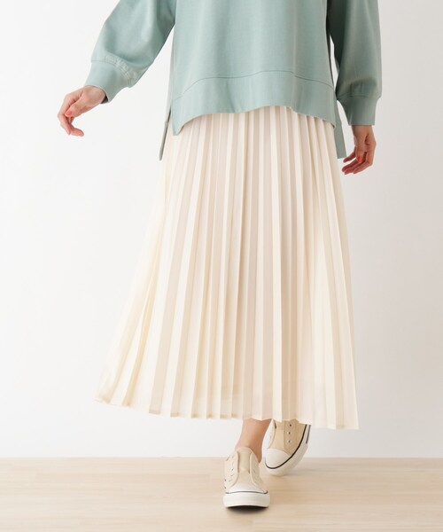 【デザイン】 気品溢れる光沢感に端正なプリーツを施したロングスカート。 歩くたびにふんわりとした揺れ感がきれいに出ます。 ウエストはゴム仕様で仕上げ、心地よいフィット感をもたせました。 ※ポケットなし 【生地感】 柔らかなシフォン素材にカレンダー加工で光沢感を出しました。 ※裏地あり ※アイボリー(004)・ピンク(070)はやや透け感があるため、インナーの着用をおすすめします。 【サイズ】 小さいサイズ01(S)サイズ、大きいサイズ04(LL)の展開あり。※04(LL)サイズはWEB限定サイズです。 #CutieBlonde#Cutie#cutieblonde#cutie#キューティブロンド#キューティ#20代#30代 こちらの商品は主に春に着用いただける商品です。 モデル情報:身長166cm B80 W59 H85 着用サイズ:02(M) 店舗へのお問い合わせ商品番号:256-72007 ●製品寸法: 01(S):W64cm 総丈83cm 02(M):W68cm 総丈85cm 03(L):W72cm 総丈87cm 04(LL):W76cm 総丈89cm 備考: