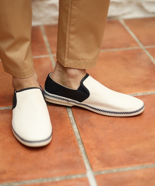 ノンストレスに着脱可能エスパドリューライクなスニーカー 【fabric】 イントレチャート調のエンボス加工を施した素材を使用。 光の当たり具合で表情が変化、模様がより浮き出るので、 高級感を醸し出してくれます。 【style】 セットアップから、ジャケパンスタイル(ジャケットパンツスタイル)まで、 幅広くコーディネートできるアイテムで、装いがより一層「大人な印象」に。 シャツやデニムと合わせて頂ければトレンドライクなコーデを演出できます。 サマーライクなアイテムですので、ハーフパンツや7分丈シャツ、ハットなどを合わせて頂ければ、 簡単におしゃれが構築できます。 【モデルサイズスペック】 身長: 179cm バスト: 88cm ウエスト: 70cm ヒップ: 86cm 着用ウェアサイズ:Lサイズ 【UNION STAITON】 "ちょっとオシャレをもっと簡単に"をテーマとして掲げ、 ちょっとしたオシャレをより簡単に着こなせるアイテムを数多く取り揃えております。 細部にまでこだわったデザインと実用性と日々のケアがストレスにならない、 ファブリック選びを徹底的追求しております。 【2022S/S Delusion Trip】 UNION STATIONクリエイティブディレクターが当時旅したロサンゼルス「ユニオン駅」に懐古の念を駆せ、 「妄想旅行」というキーワードを軸にクリエイションを展開しております。当時の自身が収めた、 フォトグラフに感じた哀愁と美しい記憶を元に、西海岸の海とリゾート、LAカルチャーをイメージしたラインナップを構築。 新型コロナウィルス(COVID‑19)により身軽に旅行に行けなくなってしまった現代。 少しだけでも旅に出る前のワクワク感を思い出してほしい。 そんな気持ちをUNION STATIONはご提案させて頂きます。 ※屋外での撮影画像は光の加減で、実際の商品より明るく見える場合が御座います。 商品の色味は生地アップ・スタジオ撮影の画像をご参考下さい。 ※画像の商品はサンプルとなりますので実際の商品と仕様、加工、サイズが若干異なる場合がございます。 ※生産の都合上、納期が変更になる場合がございます。発送日が前後する可能性がございますので予めご了承ください。
