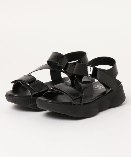 エナメルのテープベルトがスポーティーな雰囲気のスニーカーソールサンダル。 軽量でクッション性のあるつくりで履き心地も快適なサンダルです。
