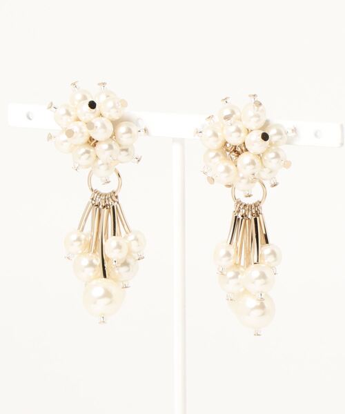 たっぷりのパールを使用した可愛らしいフォルムに心惹かれるイヤリング。先端で揺れるフリンジみたいなパールが可愛らしいアクセント。トップのみでの使用も可能だから、コーデに合わせてアレンジを楽しんで。 【Jewel Casket】 宝石箱という意味のJewel Casket(ジュアルキャスケット)。カジュアルシーンに使えるアクセサリーから、パーティーで使えるアクセサリーまで幅広いデザインを展開しています。コットンパールにイニシャルをデザインしたリングとピアスは、普段使いにぴったりのアイテム。きっと、「私の宝石箱」の中でお気に入りのアクセサリーになってくれます。