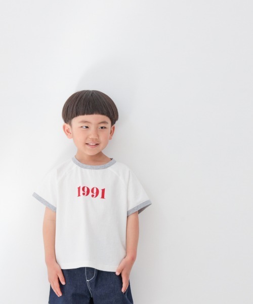襟と袖口が配色になったリンガーT。 フロントのプリントはフロッキーポイントでちょっぴり立体感があるのがポイント。 ボーイズライクなTシャツなので、女の子はスカートと合わせたMIXスタイルがおすすめ! オーバーオールの中に着て、配色を効かせたコーディネートもおすすめです!