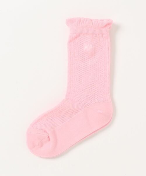 綿の細い糸を使用した涼しげな編地のクルーソックスです。前後にあしらわれたレース柄の透かし編みが上品です。少し長めの丈でクシュッとさせてもGood♪【KP DECO/ケーピーデコ】DECOは「雑貨」という意味。KP・KP BOY・trois lapinsブランド全てに合わせられるマルチな雑貨ブランドです。