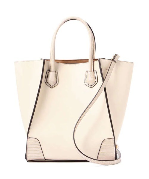 シーズンライクなコンビ素材のトートバッグ。異なる質感で組み合わせた大人顔なデザインです。きちんとした見た目と、必需品が入れられる便利なサイズ感、コーディネートに合わせやすいデザインが魅力なアイテムです。取り外しできるショルダーベルト付きです。