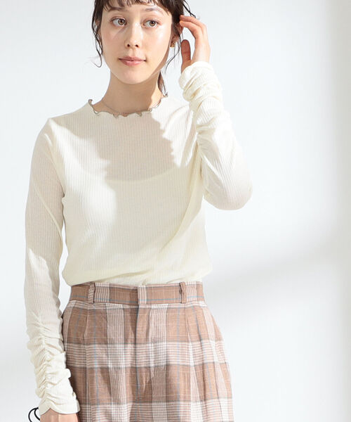 レイヤードにも使えて便利な一枚カラーリングが目を惹くカットソー。薄手で肌なじみが良いリブ素材を使用しており、程よいフィット感が魅力です。袖口にたっぷりと施したギャザーディティールが可愛らしさもプラス◎。オールインワンやキャミソールワンピのインナーとしてレイヤードスタイルがおすすめです。OFF WHITE Model:H170(cm) Size:ONE SIZERED STAFF Model:H162 (cm) Size:ONE SIZE