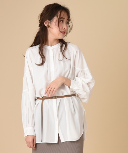 バンドカラーで甘くなり過ぎない大人のブラウス肌触りの良いレーヨン混の生地を使用し、襟ぐりのギャザーと袖のティアードデザインから出来上がる上品なシルエットが女性らしさを演出してくれるブラウスです。腰回りがしっかり隠れる着丈で体型カバーも◎ベルト付きなのもおススメなポイント。シンプルなボトムを合わせるだけでいつものスタイルがワンランクアップします。袖口をたくし上げてボリューム袖を楽しむのも素敵です。デイリーにデニムを合わせるのはもちろん、きれい目なテーパードパンツやスカートでONスタイルにもお勧めです。■取扱いご自宅でイージーケア(手洗い)が出来ます。■付属ベルト合成皮革幅:約1.3㎝長さ:116㎝INTERPLANET/actuel(インタープラネット/アクチュエル)・conceptいつだって私らしく、私自身のスタイルが決まる。。。時代や年齢に媚びない『らしさ』を纏って生きる女性へ。旬なベーシックと抜け感のあるカジュアルをMIX。そんな大人カジュアルコーデを提案します。・お気に入りの登録についてショップ、ブランドのお気に入り登録でクーポンやタイムセールの通知などお得な情報を受け取ることができます♪また、気になるアイテムのお気に入り登録でセールや再入荷の通知など受け取ることができます。