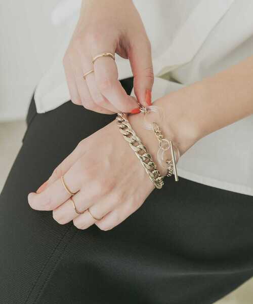 【首周りにアクセントを添えるチェーンチョーカー】デザインの異なるチェーンを組み合わせたチョーカー。手首に二重に巻くとブレスレットとしてもお使いいただけます。ガラスマンテルは春夏らしい清涼感を与えてくれて◎※商品画像は、光の当たり具合やパソコンなどの閲覧環境により、実際の色味と異なって見える場合がございます。予めご了承ください。※商品の色味の目安は、商品単体の画像をご参照ください。
