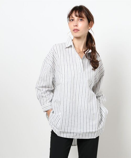ヘルシーな抜け感を漂わせるスキッパーネックのシャツチュニック。後ろ開きのボタンデザインで、バックスタイルにこなれたニュアンスをプラス◎リラックス感のあるシルエットと長めの着丈が気負いなくスタイリング出来るポイントです。さらっとした着心地の良い綿麻素材で着心地も良く、デイリーの愛用率も高まりそう。