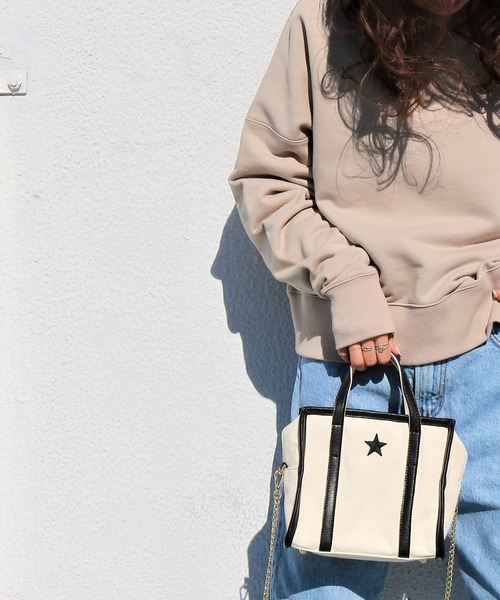 四角型のボックスデザインがクラシカルな雰囲気のキャンバスバッグ。付属のゴールドチェーンのショルダーベルトが上品な印象。肩の部分にはクロコ型押しレザーが施され高級感アップ。本体は目の細かいしっかりとしたキャンバス生地に、ブラックの羊革で縁取りをすることで引き締まったデザインに。ワンスターの刺繍も目を引きます。開閉口はジップ仕様で安心。コンパクトな見た目ですがマチのしっかりあるサイズ感で長財布やポーチも収納可能。お出かけにさらっと持ちたい、大人のキャンバスバッグです。【atneK by Scrap Book/アトネック バイ スクラップブック】atneKデザイナー 渋沢ケンタ氏が作る、Scrap Bookとのコラボレーションライン。海外で著名人の個人スタイリストや、アート活動をおこなう。日本の大手企業と様々なコラボレーション活動をおこなった後、日本のメーカーでバッグのデザインを手掛ける。2015年に独立し、自身のブランド(atneK)を立ち上げる。コンセプト「traditional × modern」。