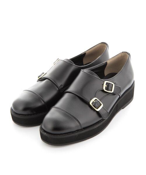 トレンドのモンクストラップシューズ。ブラウンのみフェイクレザー×フェイクスエードデザイン。履き口のストラップ裏側部分にゴムが仕込まれているので、楽に履いていただけます。トレンドのスカートスタイルにはもちろん、パンツスタイルにも◎マニッシュなスタイリングにおすすめです。