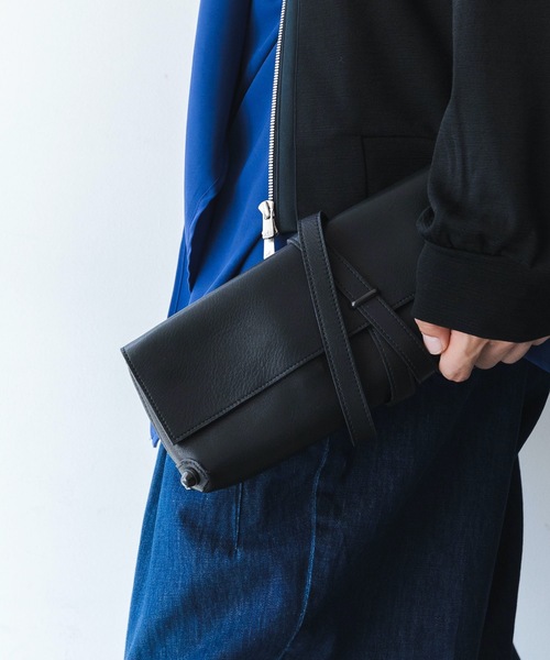 ■ CLUTCH BAG ■革本来の風合いを楽しめる上質なレザーを使用したクラッチバッグ。横長の長方形(33cm×13cm)で、機能性を持ちつつ独特のデザイン性が印象的。四隅にブラックのスタッズと長いストラップを配し、大人の遊び心をくすぐるデザインに。内装はカードポケット×6とZIPで開閉するコインポケット。さらに3つに区切られた収納ポケットが付いており、クラッチバッグと財布の中間的な存在に仕上げています。見た目はクラッチバッグ、機能は財布。クラッチ一つですべてをまかなう機能性を持っています。素材にはキメの細かな上質なカウレザーを素上げ(表面に皮膜を作らず、オイルのみで磨き上げる方法)することで、革本来の風合いを最大限引き出し素材の魅力を存分に味わえるものを使用。また内側には滑らかで肌触りの良い異なるレザーを用いることで、素材のコントラストを与え上質な雰囲気を醸し出しています。・上質な素上げのカウハイドレザーを使用・長いレザーのストラップ・四隅にブラックのスタッズ・カードポケット×6・ZIP付きコインポケット・3つに区切られたマルチポケット■ 着用感重厚なレザーの質感を楽しめる上品なクラッチバッグです。クレジットカードや小銭など財布としての機能を持ちつつ、スマホや通帳、ちょっとした小物なども収納可能ですので、財布無しで出かけること可能です。普段使いから、パーティー、結婚式などちょっとしたフォーマルまで対応可能なバッグです。ありそうで少ないメンズのクラッチバッグは一つ持っているとかなり重宝するアイテムです。- ato -アトウでは身体を個性の象徴と捉え、一つ一つのパターンにこだわりを持ち服作りに取り組んでおります。全てのアイテムを立体裁断で作っているのも、フォルムはデザインであり、また身体という個性を意識させるシルエットを目指しているからです。男性らしさ、女性らしさに捉われて一本のラインを引くことなく、「個々の個性を引き出す」という考えのもと物作りを行っております。また、アトウでは服の全てにパタンナーネームをつけております。これはデザイナーだけではなくパタンナーなどスタッフ一人一人が「良い服を作る」という目的のもと、個性を生かした服作りを行っている象徴でもあります。