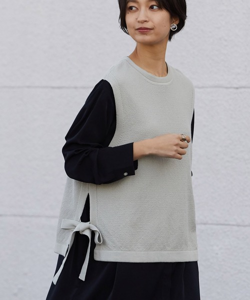 凹凸のある独特の編み地が、肌あたりが心地よく 素材の質感を楽しめる一枚です。 サイドにあしらわれたリボンディテールが フェミニンなアクセントになったニットベスト。 すっきりとしたシルエットでコーディネートに取り入れやすく、 パンツにもスカートにも相性抜群。 トップスにレイヤードするだけで トレンドコーデを楽しめるアイテムです。 「鹿の子ニット」とは? 鹿の背の斑点に似た模様の編み方(ニット) で、ジャージー(ニット生地)の一種です。 表面が凸凹になっているので肌にペタッと くっつかず、サラリとした肌さわりで 清涼感があり、風通しのよいのが特徴。 【完売カラー♥クリックのススメ】 随時、入庫はしていますが人気のため 完売しやすくなっています!! お気に入り登録の♥をクリックしていただくと 通知がきて、すぐにご購入いただけます! あとは商品が届くのを待つだけ♪ ぜひご登録ください♥ 【ブランドのお気に入り登録♥ススメ】 新商品や再入荷など、最新情報・お得情報を いち早くお知らせします! ぜひご登録ください♥