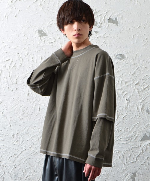 【ヘビーウエイトフェイクロングTスウェット】【Design/デザイン】長袖と半袖のロンtをレイヤードして組み合わせたようなフェイクレイヤードデザインのロンt。袖だけでなく、襟元にもレイヤードデザインが施されているのがポイントです。全体にステッチが入っているのもデザインのアクセントに。【Fabric/生地感】コットンを100%使用。ガシっとした質感で、厚みを感じられるので、デイリーユースにピッタリな生地になっています。トレーナー メンズ ビッグTシャツ メンズ 大きいサイズ オーバーサイズ トレーナー 重ね着風 トレーナー メンズ 重ね着風 メンズ レイヤード Tシャツ ビッグシルエット ロンT 春 トップス 無地 韓国 ファッション 春服 春 春夏 メンズファッション■生地の伸縮性 ・・・ やや伸縮します。■生地の透け感 ・・・ オフホワイトは、インナーが濃色の場合やや透け感があります。■生地の厚み ・・・ やや厚いです。■着用のサイズ感 ・・・ ■裏地の有無 ・・・ 無し。=============================【お買い物をもっと便利に楽しく♪】■商品のお気に入り登録をすると・・・完売カラー・サイズの再入荷通知や、ラスト1点の通知、お得なセール情報も受け取ることができます!■ブランドのお気に入り登録をすると・・・新商品や再入荷のお知らせなどいち早くブランドの最新情報を受け取ることができますのでご登録をオススメします!