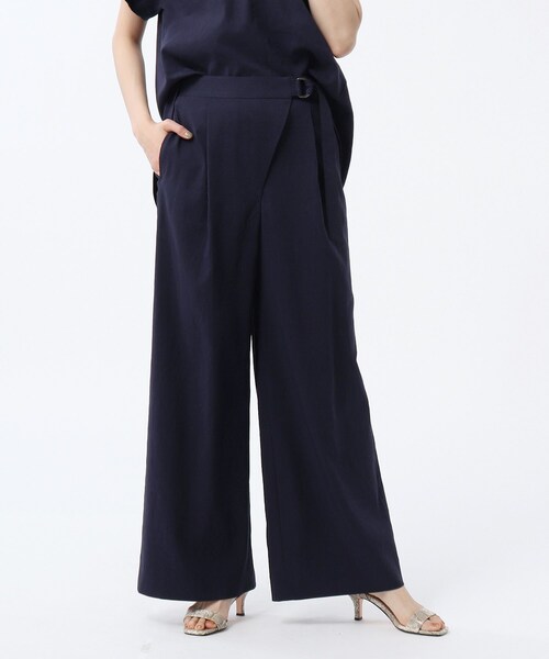 【デザイン】 フロント部分がタックディティールのワイドパンツ。 ウエストベルト部分はDカン付きのデザインになっています。 ボディラインを拾わないゆったりフォルムでリラクシーな着心地を叶えます。 ※ポケット数:横×2、後ろ(ダミー)×2 【生地感】 トリアセテート、リネン、セルロースと言った環境に優しいエシカルな原料を使用し、開発したメードインジャパンの素材。 環境問題への注目も加速する中、サスティナブルな原料調達はファッションに置いてもますます重要性を増してきています。 トリアセテートのシャリ感とリネンの適度なハリ感、セルロースのしなやかさを上手くミックスされた風合いが特徴です。 ストレッチ感があり、更に仕上げをタンブラー加工を施してナチュラルなシワ感、膨らみ感を出しました。 エシカルな原料選びによる素材への拘り、また各々のクオリティーの風合いの良さを引き出した感度のある素材となっております。 ※ホワイト(002)はやや透け感があります。 サイズ違いの商品もご用意しております。 L:153-62961 こちらの商品は主に夏に着用いただける商品です。 モデル情報:身長167cm B80 W57 H83 着用サイズ:02(M) 店舗へのお問い合わせ商品番号:153-62411 ●製品寸法: 00(SS):W63cm H97cm 股下65cm 前股上29cm 渡り幅32cm 01(S):W66cm H100cm 股下70cm 前股上30cm 渡り幅33cm 02(M):W70cm H104cm 股下70cm 前股上30cm 渡り幅34cm 03(L):W73cm H107cm 股下71cm 前股上31cm 渡り幅36cm 99(SSS):W62cm H96cm 股下63cm 前股上29cm 渡り幅32cm 備考: