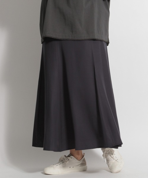 サステナブル素材をデイリーに サステナブル素材を使用した、シルエットのきれいなマーメイドスカート。 揺れ感のある軽い風合いがこれからの季節にぴったりの一枚。 ウエストは後ろゴム仕様で、すっきり見えて楽に着用できます。 素材には再生可能な木材から抽出されたTENCEL™セルロース繊維を使用。 植物由来の清涼感とドライ感、優しい肌触りが特徴です。