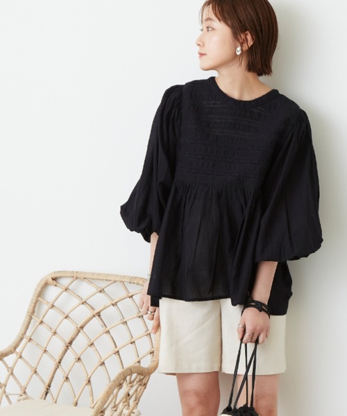 ♦大人の抜け感たっぷり♪ボーダーレースブラウス【特徴】胸元に施されたボーダーレースが目を惹くブラウス。程よく透け感のあるデザインなので合わせるインナーで楽しめる1枚に◎上品で女性らしいバルーンスリーブ袖になっており抜かりのないデザインとなっています。柔らかく肌触りの良い素材感はさらっと着れちゃう、これからの季節に重宝すること間違いなし♪【スタイリングポイント】ホリデー定番人気のデニムパンツでカジュアルな着こなしはもちろん、今年はワントーンコーデで上品な着こなしもおすすめ♪タウンカジュアルにも都会的なスタイルにもなる楽しめる1枚です◎----------------------------------------------------------▶商品のお気に入り登録完売カラーの再入荷通知やラスト1点の通知などお得なプライスダウンの情報も受け取ることができます。ぜひご登録ください◎▶ブランドのお気に入り登録新商品や再入荷など、ブランドの最新情報をいち早くお知らせします!ぜひご登録ください♪----------------------------------------------------------※撮影環境の光や角度により、実物と色味が異なる場合がございます。 また表示のサイズ感も実物とは若干異なる場合もございますので、予めご了承ください。 ※着用、お取り扱いの際は、商品に付いている品質表示を必ずご確認ください。
