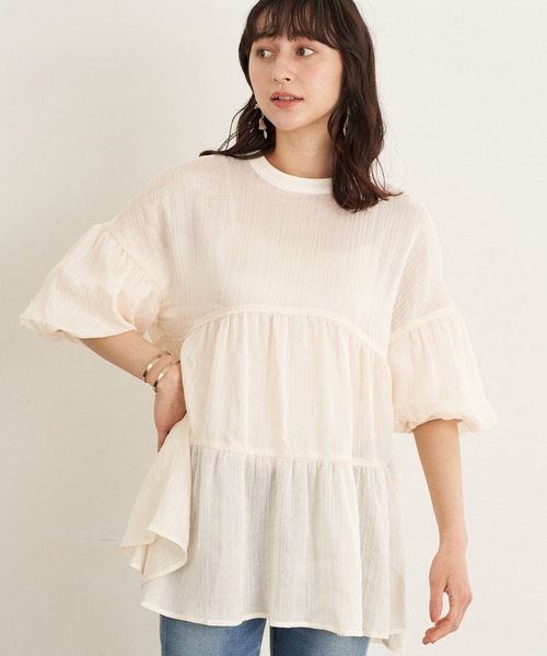 軽やかな楊柳地をふんわりとティアードした、フェミニンな雰囲気を纏うブラウス。 柔らかなボリューム感があり、さりげなくスタイルカバーしてくれるのも嬉しいところ。 ふわっとしたフレアなスリーブも可愛らしいポイントです◎ 旬なシアー素材でスタイリングにこなれた抜け感も演出してくれるアイテム。 ● earth music&ecology ● (アース ミュージック&エコロジー) 流行とナチュラル感を取り入れ、幅広い層に向けて発信するブランド。 オシャレ着から通勤、カジュアルまで女性の様々なシーンで楽しんでいただけるナチュラルガーリッシュなアイテムを展開。 ▼ 商品のお気に入り登録がおすすめです ▼ 商品ページ内のハートマークをクリック。完売時の再入荷や、最後の1点の通知、コーディネート画像がアップされたとき、お得なお値下げの際の通知を受ける事ができます。 【お知らせ】ページでも通知が確認できます。