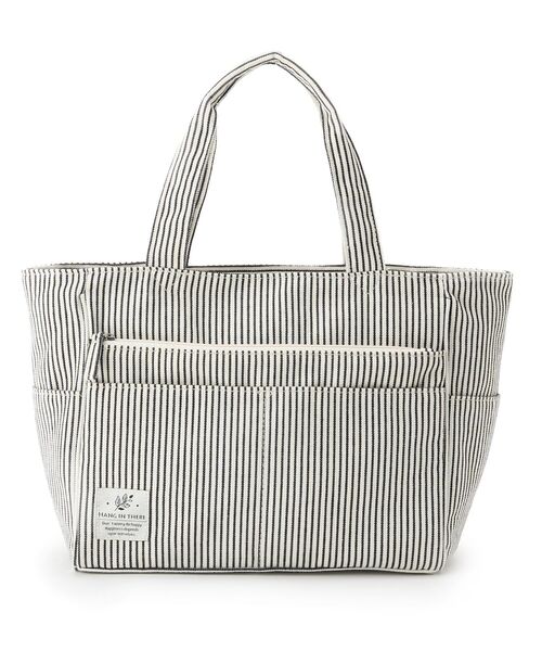 【デザイン】 洗濯機で丸洗い可能な、清潔に保てるトートバッグ。 ポケットがたくさんあって整理整頓しやすいのも嬉しいポイントです。 ※ポケット数:外側×6 内側×5 【機能性】 ・洗濯機で洗えます(*手洗いコースのみ可)。 ・ネット使用。 ・無蛍光洗剤を使用。 ・濃色系のものは単品洗い。 ・ボタン、ファスナー等は、閉じて洗う。 ・取り外し可能な附属品は、外して洗う。 ・漂白剤使用禁止。 ・アイロン禁止。 ・つけ置き洗い・濡れたままの放置、濡れがけアイロン、禁止。 ・附属・プリント部分は、もみ洗い、乾熱・スチームアイロン禁止。 ・湿潤での過度な摩擦は、毛羽立ち・白化の原因となるため注意。 ・合成皮革・人工皮革・ボンディング・コーティング生地は、徐々に劣化する。 ・タンブル乾燥禁止。 店舗へのお問い合わせ商品番号:C70-02203 ●製品寸法: 00:高さ22.5cm 幅(上部)39cm 幅(下部)27.5cm マチ14cm 持ち手上がり13cm 備考:重量:約285g(サンプル重量)