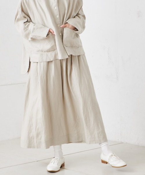 ピュアルセシン 2021 Spring collection 【with a Breeze】 新しい価値観の生活の中でこそ、ピュアルらしさのモノづくりの持続とその中にも、エフォートレスな気分、「with a Breeze」風をまとい、丁寧な暮らしに寄り添える、洗練されたスタイリングの提案 ◇定番のナチュラルなロングスカート◇ 麻とレーヨンの混合素材で仕立てられたロングギャザースカート。 とろみ感があり、軽くて着心地の良い素材感です。 サイドファスナーと、後ろにゴムが付いており、着脱しやすくなっています。 トップスをインした際に、ゴムが見えずキレイめな印象に。 後ろにはさりげないウエストリボンが付いており、大人可愛いを演出してくれます。 着用を繰り返すうちにリネンの風合いが増していくので、その変化も楽しめる1枚。 Tシャツやブラウス、ニットなど、トップスを選ばない万能アイテムです。 春〜初秋頃まで、コーディネート次第でロングシーズン活躍してくれます。 ・シンプルな定番デザイン ・とろみ素材で柔らかい着心地 ・トップスを選ばない万能アイテム ・ロングシーズン着用可能 =============================== 透け感:なし裏地:なし伸縮性:なし光沢感:なし生地の厚さ:やや薄手 【スタッフコメント】年齢:30代前半/身長156cm 普段着用サイズ: Lサイズ サイズ感:サイドファスナー付きで、楽に着られます。足首が出る位の丈感で動きやすく、靴下コーデも楽しめそうです。裾が広がりすぎず、体型カバー出来ます。 素材感:とても肌触りが良く気持ちいい素材です。とろみがあり、落ち感があります。 =============================== ※撮影場所やお使いのモニター環境により若干お色味が異なる場合がございます。特にロケの撮影では明るく見える傾向にございます。 ※予約商品はサンプルで撮影をしております。若干の仕様が変更になる場合がございますので予めご了承の上ご注文くださいますようお願いいたします。