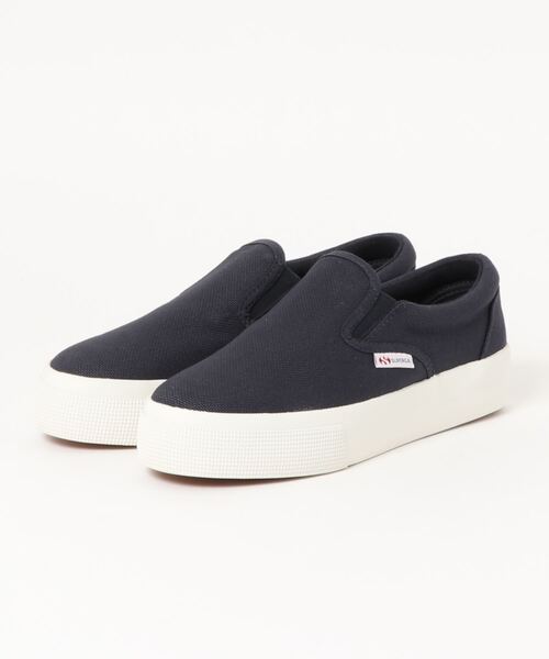 つま先からかかとまでが台状になった3cmのプラットフォームソールのスニーカー。 着脱が容易なスリッポンタイプです。 アッパーは、通気性を備えた厚手のキャンバス生地を採用。 機能性もさることながら、厚手のキャンバス生地はハリとコシがある質感で型崩れを防ぎ、しっかりとしたフォルムを長く保ちます。 アウトソールは、上質なラバーを使用。