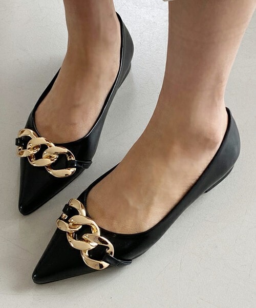甲のボールドなゴールドチェーンで高級感のある ポイントを与えたシューズです。 ※WEARに記載してある金額と、DHOLIC通販サイトに記載してある金額にシステム都合上、稀に誤差が生じます。正しい金額はDHOLIC通販サイトに記載された金額です。