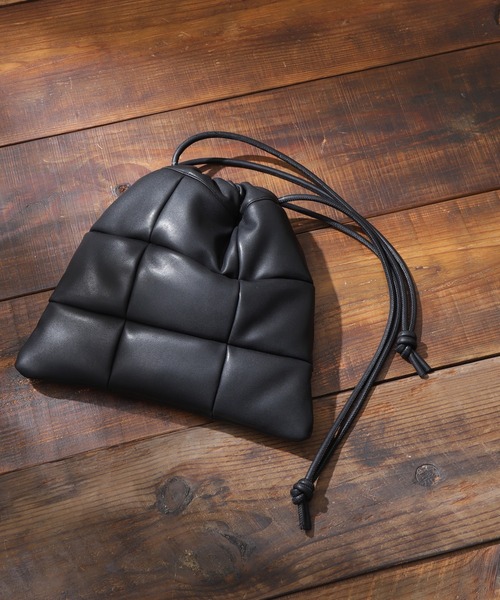 キルティングのふっくらとしたボディが可愛らしい巾着バッグ。コンパクトなサイズ感で、ワンマイルなどの気軽なお出掛けにぴったりです。口元のヒモを絞ると中身をカバーできる巾着仕様。シンプルなワンカラーなのでコーディネートに取り入れやすいです。