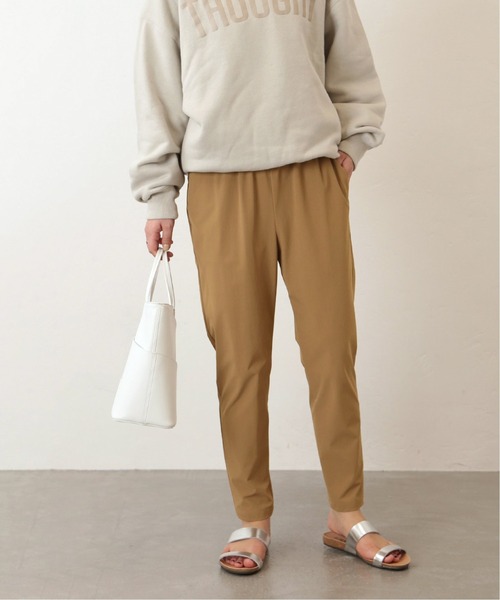 【2021 SS】JOURNAL STANDARD◆「形も色もサイズ感も◎!」「ストレッチがとても良く動きやすいです!」大好評の万能パンツが待望の再登場!!※旧品番:21030400914010と同一商品です。※ブラック、キャメルは上記品番と同色、カーキAは新色です。【快適な穿き心地】暑い日にも快適に履いていただける薄手の生地で、生地が縦横に伸びるストレッチ性、雨や水をはじきやすい撥水性、肌が生地に触れたときに冷たく感じる接触冷感性、洗濯によるしわがつきにくいイージーケア性をあ合わせ持つ素材です。ウエスト部分はゴムシャーリングでストレスフリーな履き心地!公園にもお出かけにも◎【着回し力】トップスを選ばず着まわしの効くシンプルなデザイン。ウエスト部分はゴムシャーリングトップスインして着るだけでこなれた雰囲気が出ます。合わせやすいカラーバリエーションでお手持ちのアイテムとも合わせやすいです◎【すっきりとしたシルエット】細身のきれいなシルエッはミニマルでに足首丈が着やせ効果もUPしてくれます!サイズ感のお好みでウエストを折り返してももたつかず穿けて、フラットシューズで合わせてもすっきりとクリーンな雰囲気に。スニーカーとももちろん好相性です。**********************透け感:なし裏地:なし伸縮性:あり光沢感:ややあり生地の厚さ:薄手**********************【スタッフ着用コメント】《スタッフO》年齢:30代前半/身長:158cm/体型:普通/普段サイズ:M/着用サイズ:34,36.38サイズ感:すっきりしたシルエット。素材感:ナイロン素材で軽い。ストレッチあり。着心地:ウエストゴム仕様で、ストレッチが効いており履き心地がとてもいいです。いつもより、1つサイズ上げて履いてもすっきりしたシルエット感。ONOFFに使えます。**********************※取り扱いについては、商品についている品質表示でご確認ください。※店頭及び屋外での撮影画像は、光の当たり具合で色味が違って見える場合があります。商品の色味はスタジオ撮影の画像をご参照下さい。洗濯:洗濯機使用可