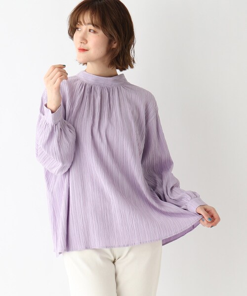 【デザイン】ワッシャー加工で表情のある風合いを出した、前後2WAY仕様のブラウスです。コーデに合わせて、リボンを前にしても後ろにしても着て頂けます。繊細なギャザーを入れ、ふんわりとほどよいボリューム感を演出し、コーディネートにフェミニンさをプラスしてくれます【生地感】毛玉になりにくく、さらりとした肌触りです。※ライトベージュ(051)・パープル(080)はやや透け感があるため、インナーの着用をおすすめします。こちらの商品は主に夏に着用いただける商品です。モデル情報:身長166cm B80 W59 H86 着用サイズ:12(M)店舗へのお問い合わせ商品番号:040-82009●製品寸法:12(M):着丈59cm B122cm 袖丈50cm 肩幅45cm13(L):着丈61cm B124cm 袖丈51cm 肩幅46cm備考: