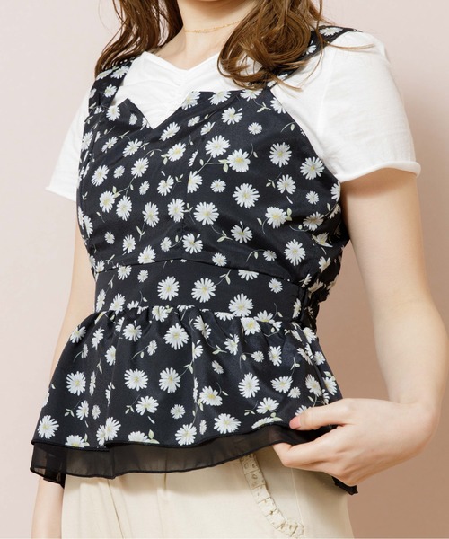風にのって舞っているようなお花柄がキュートな1枚。コンパクトなサイズ感とギャザーをたっぷりと寄せたペプラムデザインがスタイルアップを叶えます。胸元のVカットやウエストベルトもすっきりと見せるデザインポイント!後ろにはシャーリングを施しバックスタイルまでかわいく仕上げました。共布ベルトはバックでリボン結びにしてもかわいいです◎シンプルなカットソーやリブトップス、flowerのレースインナーと合わせた着こなしがおすすめです。【お買い物を上手にお楽しみいただくためのPOINT2つ】◎ 購入ボタン横の ♡ (ハートマーク)をクリック! 完売カラーの再入荷通知、残り1点の通知、セールの通知を受け取れます。 (クリックまたはタップで商品のお気に入り登録♪)◎ ショップのトップページにある ♡ (ハートマーク)「お気に入りショップに追加」をクリック! 新商品や再入荷等、いち早くブランドのお得な情報を受け取れます。 (ブランドのお気に入り登録♪)