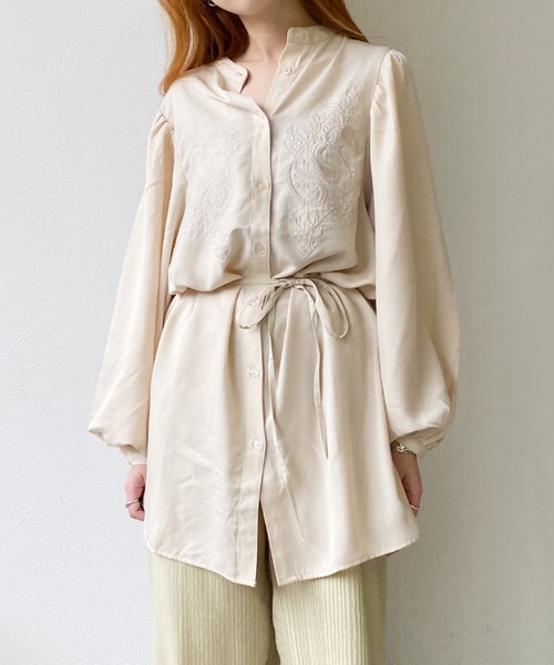 ペイズリー柄刺繍をあしらったエレガンスなシャツ。ヒップが隠れる着丈とボリューム感のある袖で今季らしいシルエットに仕上げました。バンドカラーで顔まわりをすっきりと、メリハリを加えるウエストリボンもポイントです。【UNRELISH / アンレリッシュ】“TREND”“BASIC”“CASUAL”をキーワードに、「いま」を生きる女性へ大人のワードローブを提案します。トレンドも自分らしさを後押しする要素として楽しむ、スタイルある凛とした女性をイメージ。デニムスタイルを中心に、ヘルシーな女っぽさを感じるアイテムを展開。----------------------------------------------------------▶商品のお気に入り登録完売カラーの再入荷通知やラスト1点の通知などお得なプライスダウンの情報も受け取ることができます。ぜひご登録ください◎▶ブランドのお気に入り登録新商品や再入荷など、いち早くブランドのお得な情報を受け取ることができます!ブランドのお気に入り登録も、ご一緒にお願い致します。----------------------------------------------------------▶ UNRELISH_official instagram ◀unrelish_officialアンレリッシュブランド最新情報をいち早くお届けしています新作情報や着回しなど嬉しいニュースをいち早くお届けコーディネートやお得な情報も毎日配信中!インスタライブなどの配信もございますので、ぜひフォローしてくださいね!----------------------------------------------------------